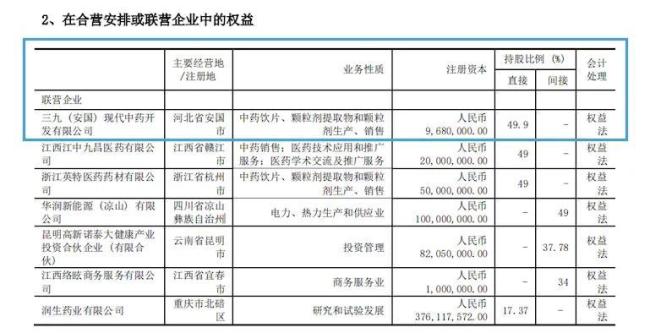 在华润三九的财报中对这家公司的定位为联营企业。
