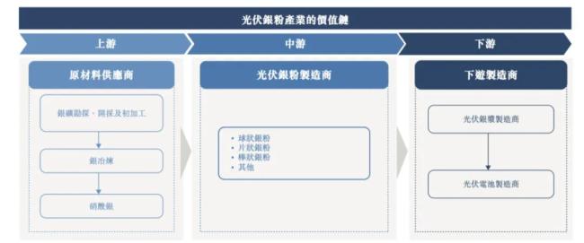 建邦高科所处的行业是光伏银粉,上游原材料供应商是银矿企业,下游是光伏银浆制造商。