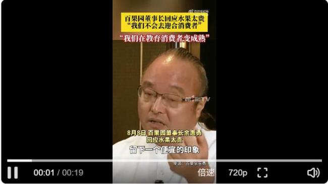 8月10日,“百果园称不会迎合消费者”登上微博热搜,引发广泛关注。此前,百果园董事长余惠勇在一段视频中回应了外界对其水果价格过高的质疑。他表示,虽然水果是普通商品,但品质差异很大,真正了解水果的消费者却很少。百果园始终坚持提供高品质水果,不会为了迎合市场而牺牲品质。