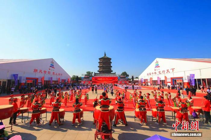 2025山西·朔州陶瓷产品进出口交易会25日在中国现存最古老、最高的木构塔式建筑应县木塔下开幕。武俊杰 摄
