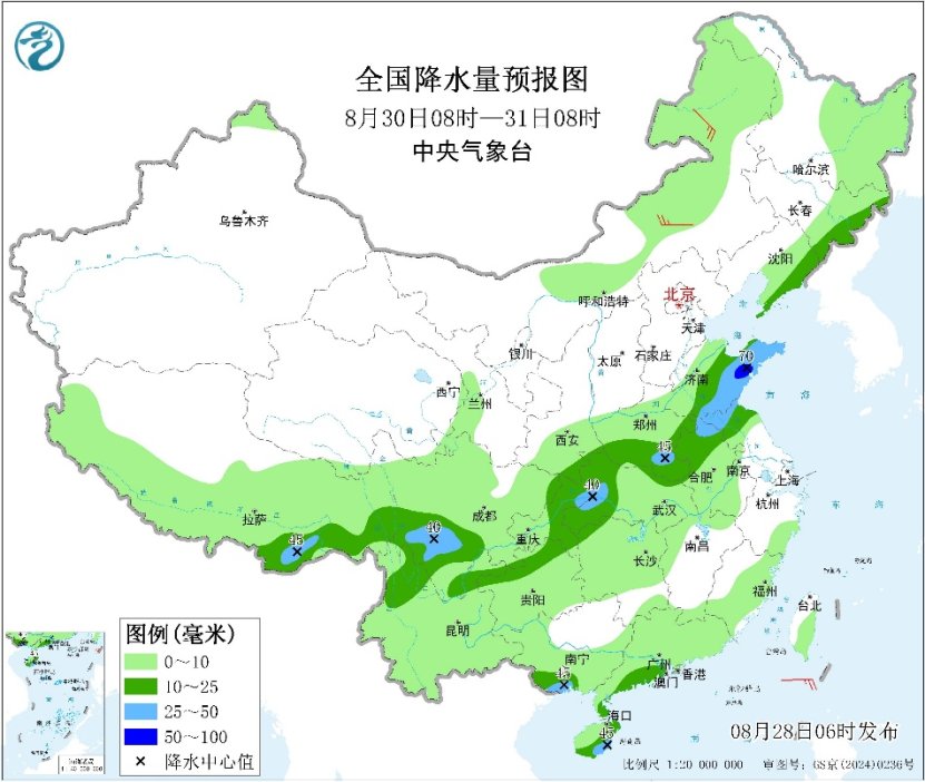 首先,关注降水方面。昨日,四川盆地西部和川西高原北部、青海东北部、甘肃南部、宁夏南部、山西东北部和南部、河南西北部、内蒙古东南部、河北大部、山东西北部、北京、天津、辽宁西部等地出现大到暴雨,其中河北保定、沧州和秦皇岛,北京房山、大兴、门头沟,天津宝坻和武清,辽宁葫芦岛和朝阳等局地出现大暴雨,四川雅安、成都和阿坝局地大暴雨或特大暴雨。