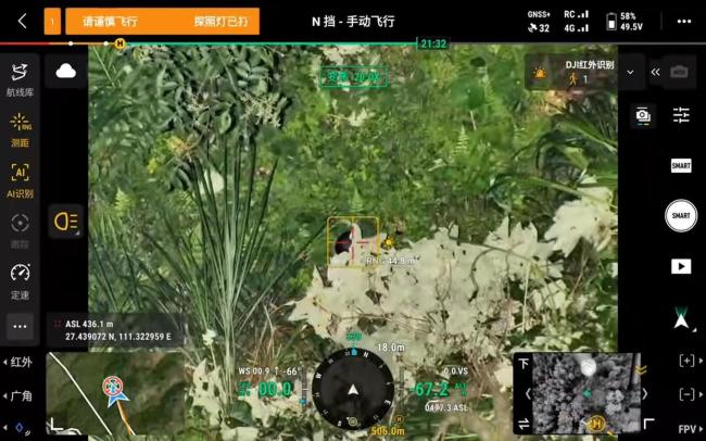 谭章是长沙市岳麓蓝天救援队成员,也是通过无人机发现玥茹的第一人。他表示,这次之所以能在短时间内找到玥茹,一方面是因为过去的搜救经验在救援线路规划上起到很大帮助,另一方面是借助了无人机热成像技术。