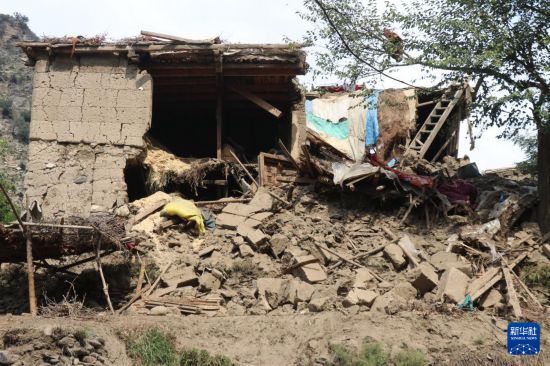 这是9月1日在阿富汗东部库纳尔省努尔加尔拍摄的在地震中损毁的房屋。新华社发(卡扎菲摄)