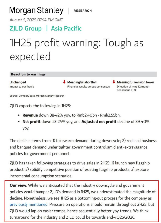 多家券商机构给予珍酒李渡“买入”评级,显示出市场对珍酒李渡中长期发展的信心。摩根士丹利研报表示,2025年上半年是珍酒李渡的触底阶段,珍酒李渡和白酒行业的回暖行情,有望在今年四季度或2026年出现。