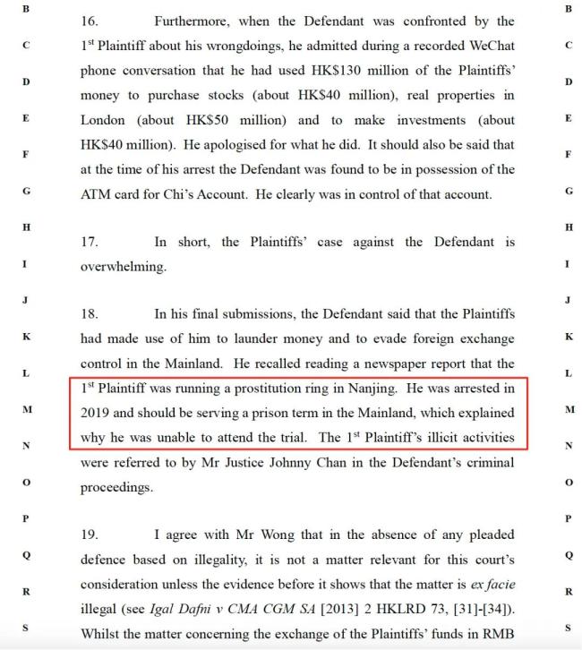 蓝鲸记者根据香港证监会提示的案号,找到了判决书原文,其中披露了更多有关孙健荣挪用资金的细节。