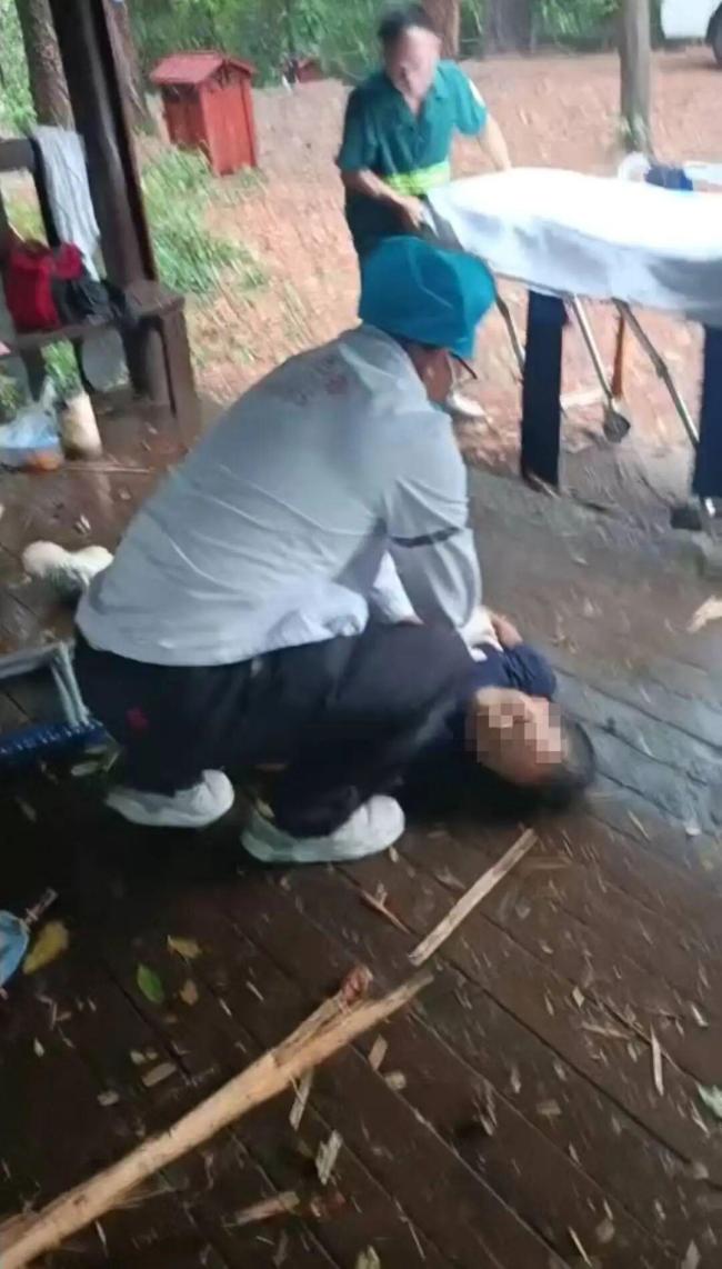 网上流传的视频显示,9月7日下午有几名游客在三门江公园森林氧吧凉亭避雨时遭遇雷击,据称有2人重伤,3人轻伤。信息发布者怀疑因游客当时集中使用手机诱发了雷击。视频中可以看到现场有救护车赶到,医院工作人员正在对躺地的人员进行心肺复苏按压。