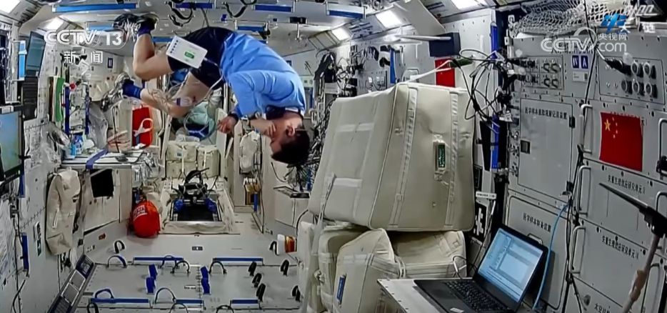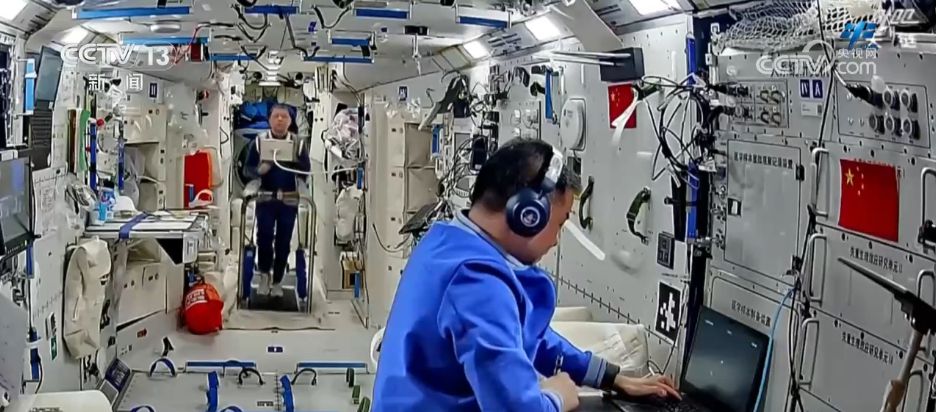在健康维护与保障方面,乘组按计划进行了运动心肺功能测试,并在积极开展身体锻炼的同时,利用神经肌肉刺激仪对抗肌肉萎缩。