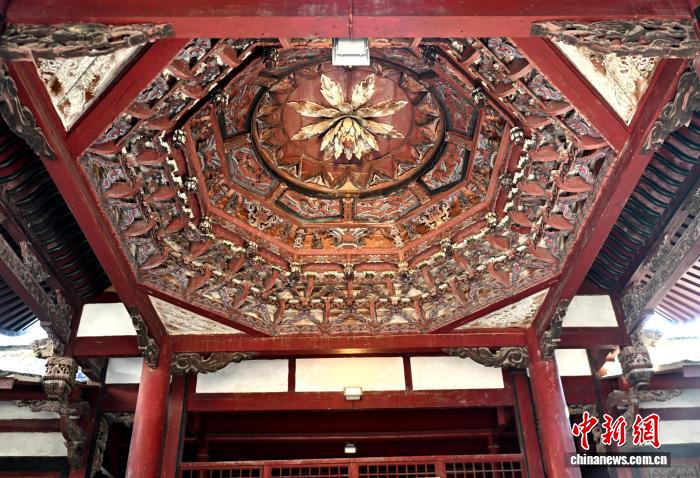 图为9月14日,临水宫祖庙建筑上的雕刻。中新社记者 吕明 摄
