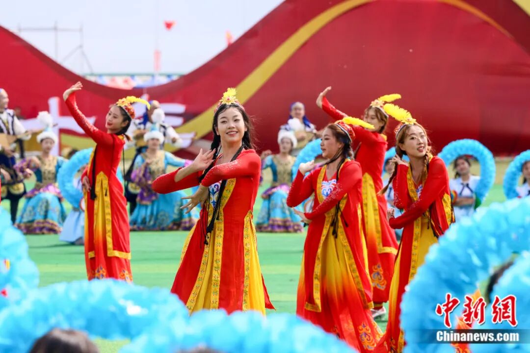 巴里坤哈萨克自治县成立70周年舞蹈表演。钟伟亮 摄