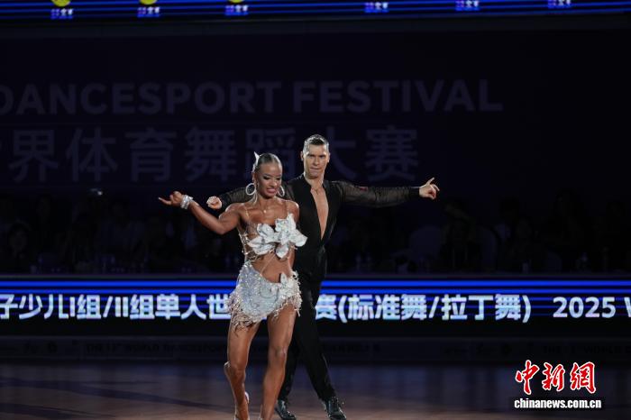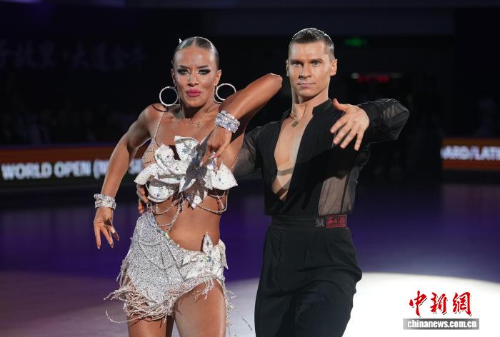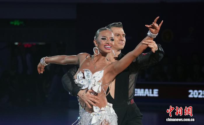 9月21日晚,2025年WDSF拉丁舞世界公开赛(新系列)决赛在成都举行。经过激烈比拼,爱沙尼亚组合康斯坦丁/波琳娜获得冠军。图为爱沙尼亚组合康斯坦丁/波琳娜在比赛中。中新社记者 安源 摄