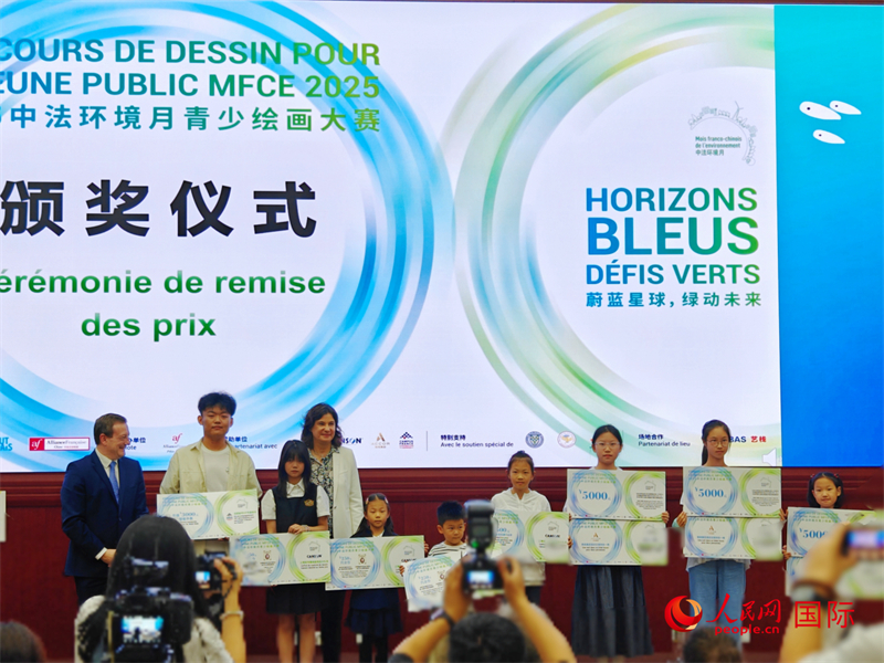 9月22日,“2025中法环境月青少绘画大赛”在第十二届中法环境月开幕式上举办颁奖仪式。人民网 李慧妍摄