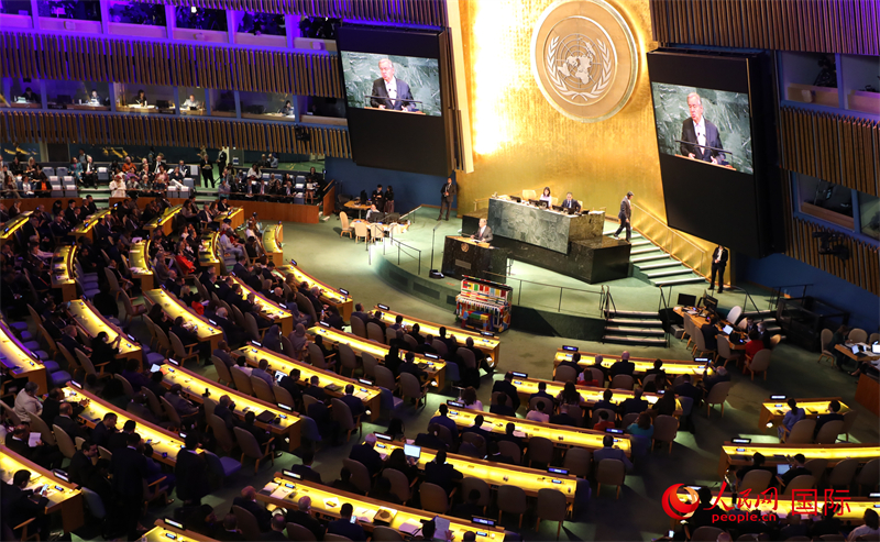 当地时间9月22日,在联合国大会堂,联合国成立八十周年高级别纪念活动举行。人民网记者 李志伟摄