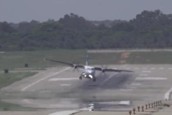 机场飞机遇强风 机翼狂甩险砸地 惊险画面曝光