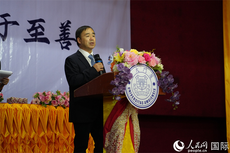 人民网清莱9月26日电 (记者简承渊)当地时间25日,厦门大学海外教育学院在泰国清莱府的鹏博冠教学点举行2025届毕业典礼及学位授予仪式,厦门大学校长张宗益出席仪式。