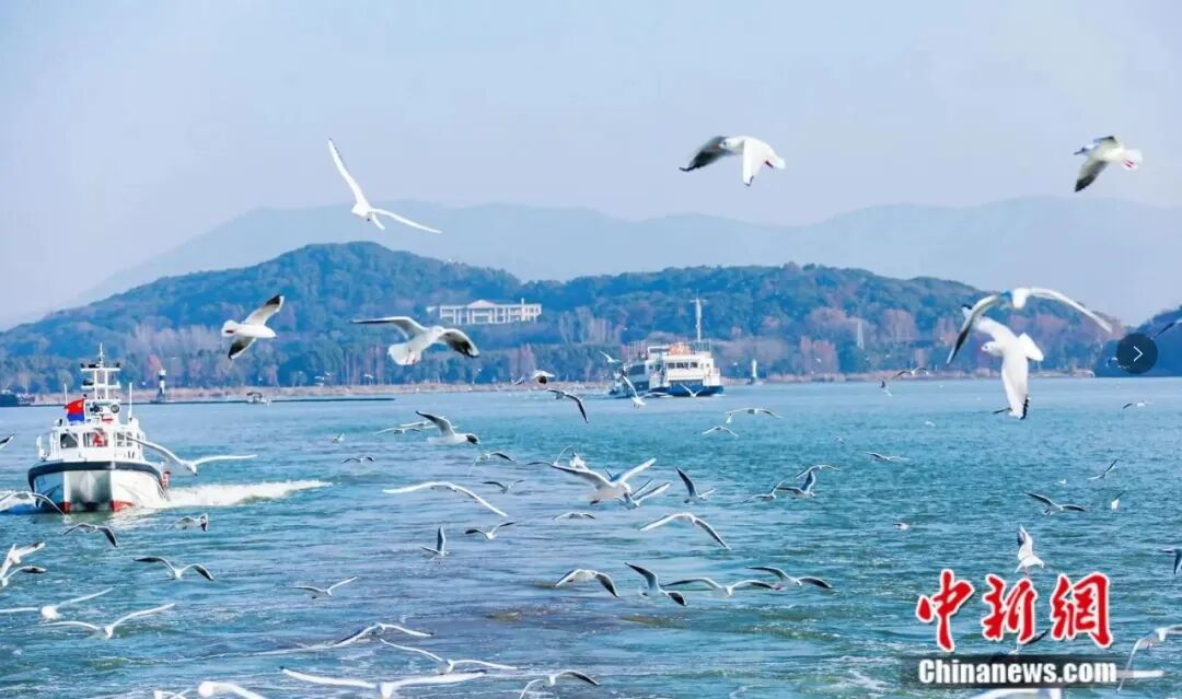 每年秋冬时节,红嘴鸥们都会不远万里来到无锡太湖畔等待春天到来。无锡市委宣传部供图