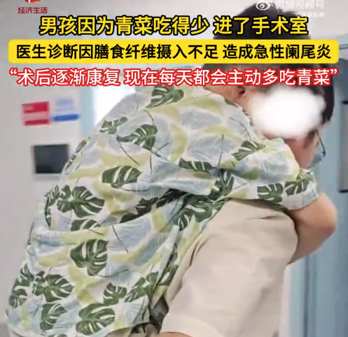 10月12日,江西抚州。男孩因为青菜吃得少,进了手术室。医生诊断因膳食纤维摄入不足,引发急性阑尾炎!