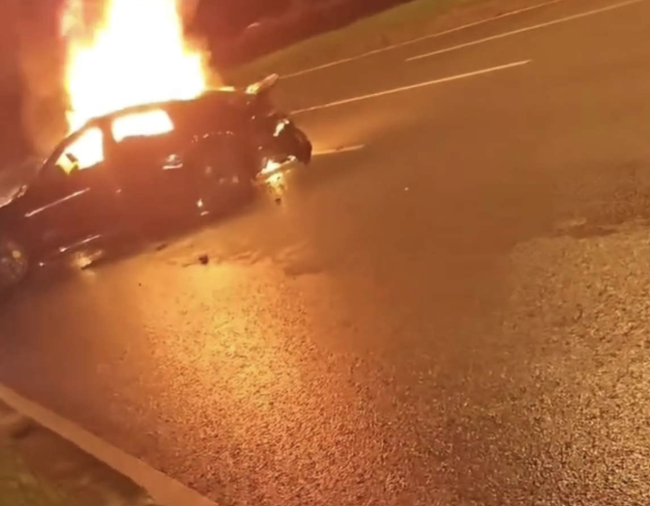 小米SU7超速行驶起火 车门无法打开