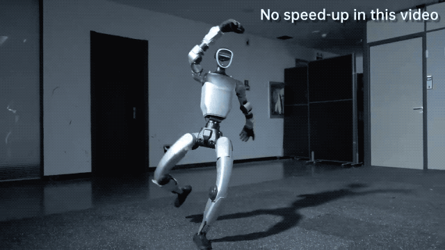 宇树机器人经过一年半的练习,展示出令人惊叹的新技能。视频中,宇树 G1 机器人在空中翻转,划出一道完美的弧线,动作一气呵成,紧接着再连续后空翻。此外,它还能完成三个单手侧后翻,摆出功夫姿势,打出一套漂亮的拳法,并做出标准的顶膝动作,仿佛钢甲铁拳走进现实。