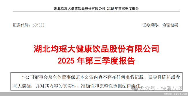 10月29日,均瑶健康披露的2025年三季报显示,前三季度实现营业收入约为10.95亿元,同比下降6.95%;实现归母净利润亏损约236.88万元,同比下降104.79%。其中三季度,实现营收约为3.29亿元,同比下降21.9%;归母净利润亏损约983.49万元,同比下降167.09%。
