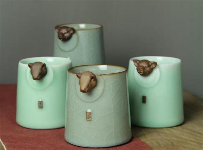 此次亮相的龙泉青瓷作品围绕精致生活主题,展现了青瓷在日用瓷方面的创新。如浙江省工艺美术大师黄顺民的《十二生肖水杯》巧妙融入生肖元素,杯身青釉温润,开片纹理古意盎然,杯口的生肖头部雕刻生动细腻,实现传统中国文化与龙泉青瓷工艺的完美融合;中国工艺美术大师、中国陶瓷艺术大师卢伟孙的《线性思绪手握杯》杯型直身微敞,杯身内侧与上唇露出白瓷胎,手工雕琢的线性纹理在涂抹青釉后,与光影交织出简洁唯美的“哲思者”轮廓,1300℃还原焰烧制的青釉擅长表达青玉般润泽的东方质感,青白层次对比尽显中国瓷器当代顶级美学。另一款《星空龟纹手握杯》则以远古龟甲纹为符号,予以美好生活的祈福寓意,杯体配天然木纹底座,尽显内敛沉稳的大家风范,将中华文化底蕴与当代设计审美巧妙融合。