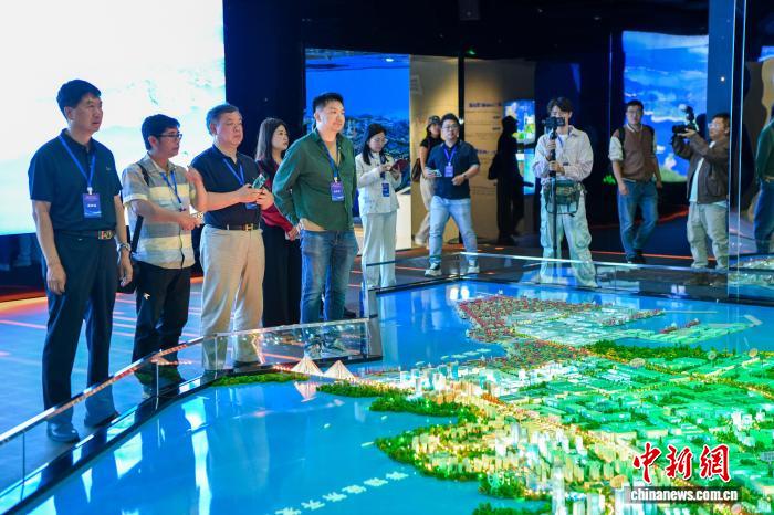 图为海外华媒代表参观洋浦展示馆。中新网记者 骆云飞摄