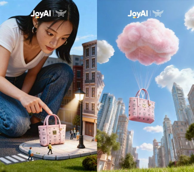 当MCM标志性的轻雾粉菜篮子出现在奇幻世界,瞬间变幻为一座可步入的梦幻屋宇,甚至有人物从中优雅走出——这不再是天马行空的幻想,而是MCM与京东数字人携手,为品牌叙事打开的全新现实。