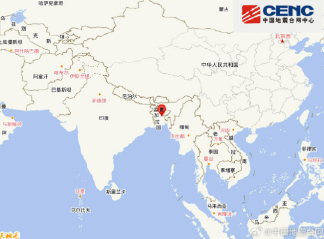 孟加拉国发生5.1级地震 震源深度10千米!中国地震台网正式测定:11月21日12时38分在孟加拉国(北纬23.75度,东经90.65度)发生5.1级地震,震源深度10千米。