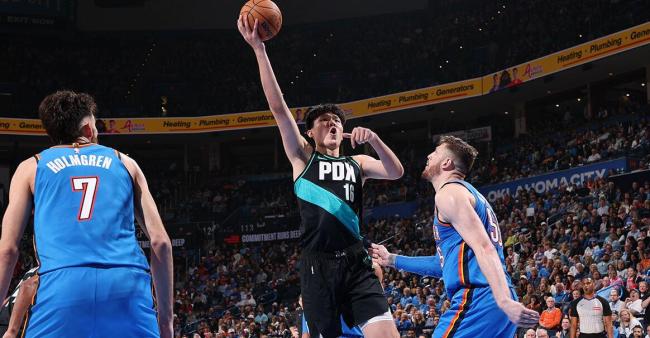 北京时间11月24日,波特兰开拓者在客场以95-122不敌卫冕冠军俄克拉荷马雷霆。杨瀚森此役出战17分钟,创下NBA生涯新高,全场贡献8分4篮板3助攻1抢断1盖帽。