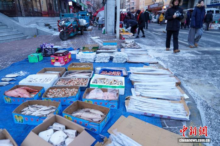 黑龙江哈尔滨变“天然大冰箱”冻货摆上街头售卖