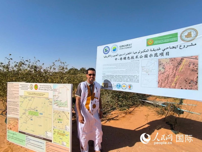 夕阳西下,示范区边缘的沙丘拉出长长的影子,这一抹绿色在黄沙中显得格外抢眼,展示了未来绿色发展的光明前景。对当地官员和技术人员而言,这是一次中毛合作的成功实践,也为未来实现人与自然和谐相处探索了一条可行性路径。