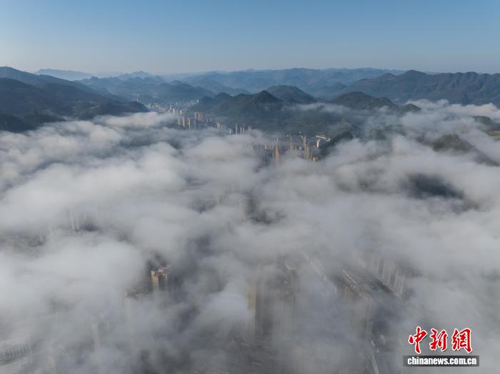 图为航拍务川平流云景观。(无人机照片)唐哲 摄