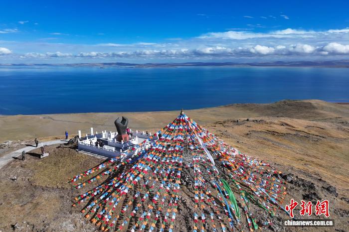 2025年9月20日,航拍黄河源头鄂陵湖静谧柔美,秋意正浓。(无人机照片) 马铭言 摄