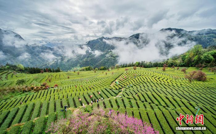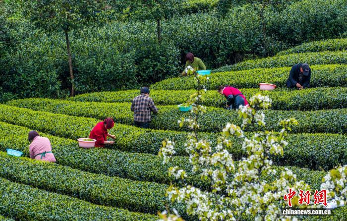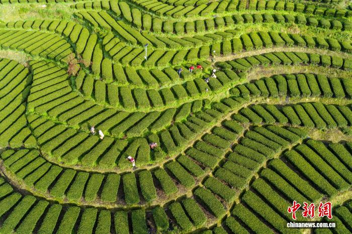 湖北恩施:茶山叠翠 茶农“画”中采春茶