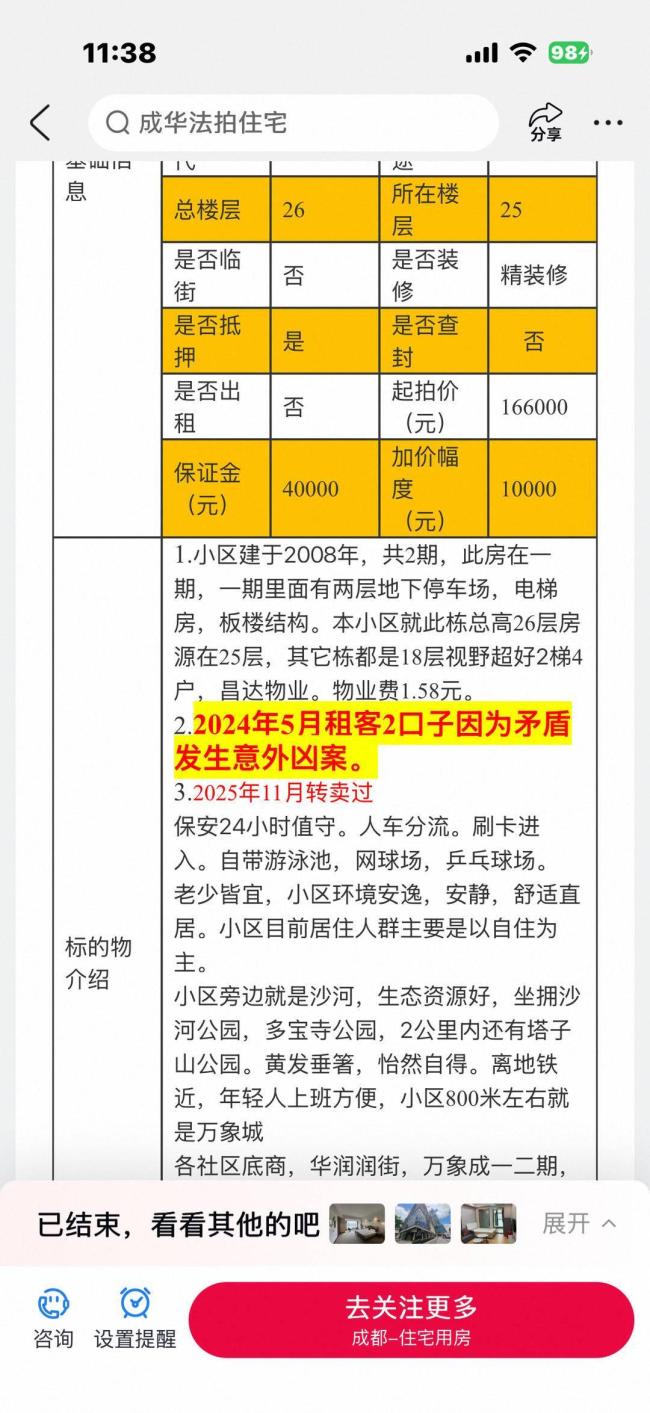成都凶宅第三次拍卖拍出98.6万 历经三次转手终成交