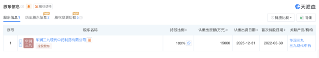 前两家新公司的大股东合肥华润三九医药有限公司,由华润三九现代中药制药有限公司全资控股(持股100%),而华润三九现代中药制药有限公司隶属于华润三九核心体系,本质为华润三九间接全资控股子公司。