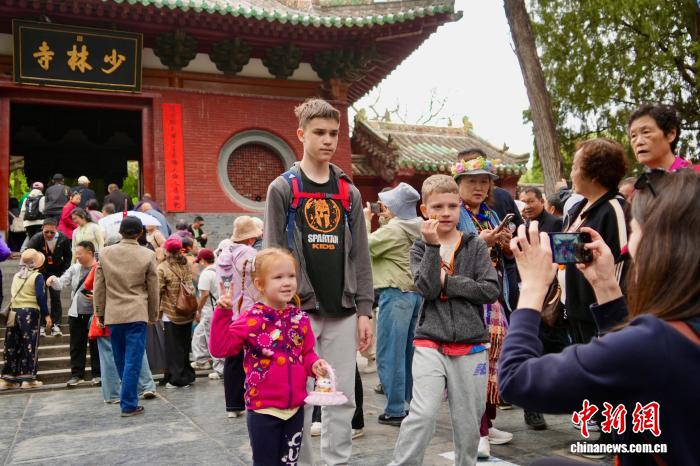图为中外游客在少林寺参观。中新社记者 李超庆 摄