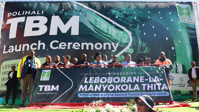 人民网约翰内斯堡4月21日电 (记者邹松)莱索托波利哈利输水隧洞建设项目第二台盾构机“大禹·雪盾号”20日举行始发掘进仪式。莱索托自然资源部部长莫洛米·莫莱科、南非水利与卫生部部长佩米·马乔迪娜、中国驻莱索托大使杨晓坤及各方代表近500人参加此次活动。仪式在全体嘉宾的共同见证下完成盾构机启动关键环节,正式宣告波利哈利输水隧道项目隧进入高效双向掘进新阶段。