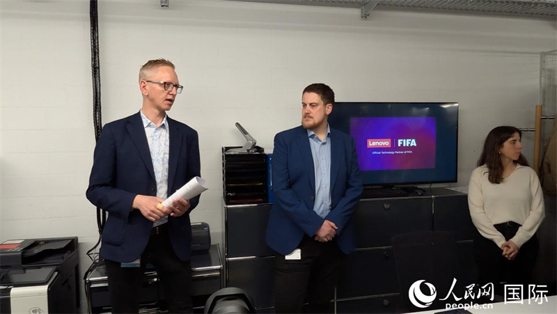 国际足联官员正在介绍世界杯应用创新技术情况。人民网记者 刘仲华摄