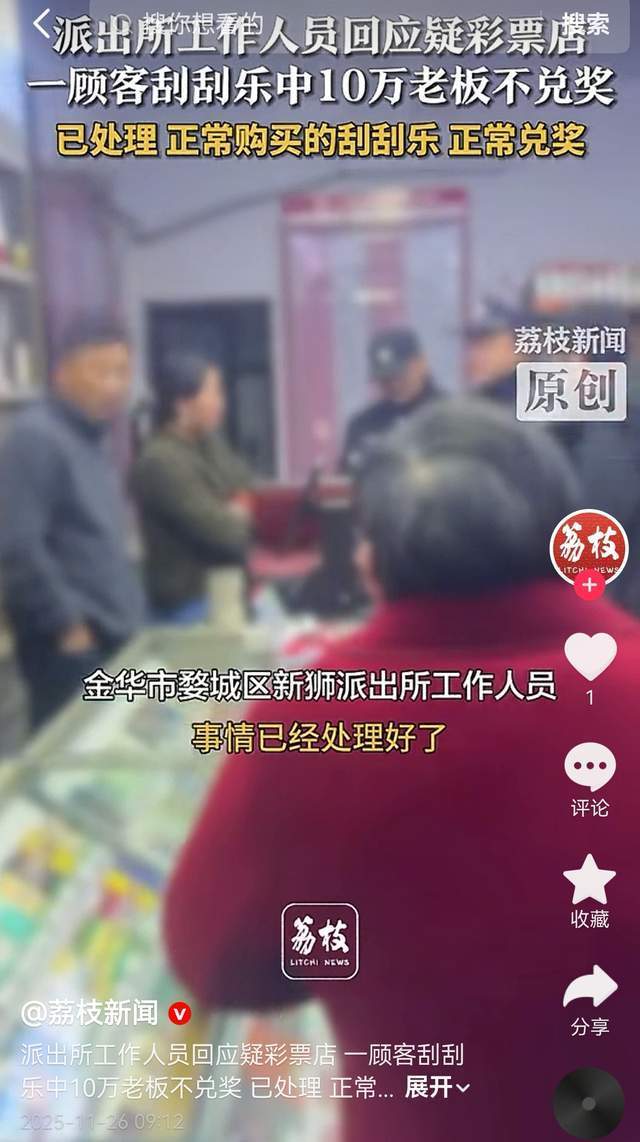 男子买彩票刮中10万后老板不认账 诚信何在 诚信是立身之本,在社会商业活动中尤为重要。如果商业经营缺乏最基本的诚信,消费者自然不会放心消费。11月26日,浙江金华一小伙在道院塘的一家彩票店购买了一张刮刮乐,幸运地刮出了10万元大奖。然而,在找老板兑奖时,对方却拒绝认账 11-26