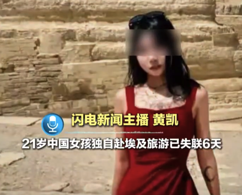 中国女孩独自赴埃及旅游失联 女孩曾说一人在国外害怕 9月27日,21岁中国女孩独自赴埃及旅游已失联6天,朋友:失联前未发现任何异常,她只说过独自一人在国外有点害怕想我过去陪她。最新消息:失联女孩已找到。... 10-13