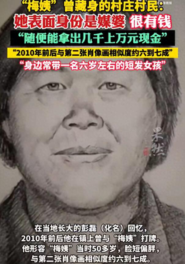 村民称“梅姨”自称姓潘衣着时髦表面身份是做媒婆 身边常带一名6岁左右短发女孩 3月25日,记者在广东省河源市紫金县水墩镇黄砂村找到彭老汉住处,但家中无人,邻居称其已数日未归。多位村民回忆见过“梅姨”。一名60岁左右村民回忆,“梅姨”自称姓潘,经人介绍与丧偶的彭老汉同居,表面身份是做媒婆,曾带一名小孩来村,来去不定,最... 03-27