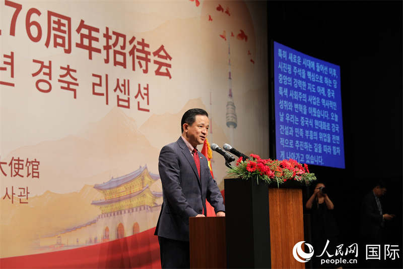 中国驻韩国大使馆举行中华人民共和国成立76周年招待会 人民网首尔9月26日电(记者莽九晨)25日,中国驻韩国大使馆在首尔隆重举行庆祝中华人民共和国成立76周年招待会。中国驻韩国大使戴兵及使馆主要外交官,韩国国会副议长朱豪英、外交部第一次官朴润柱、韩中议员 09-28