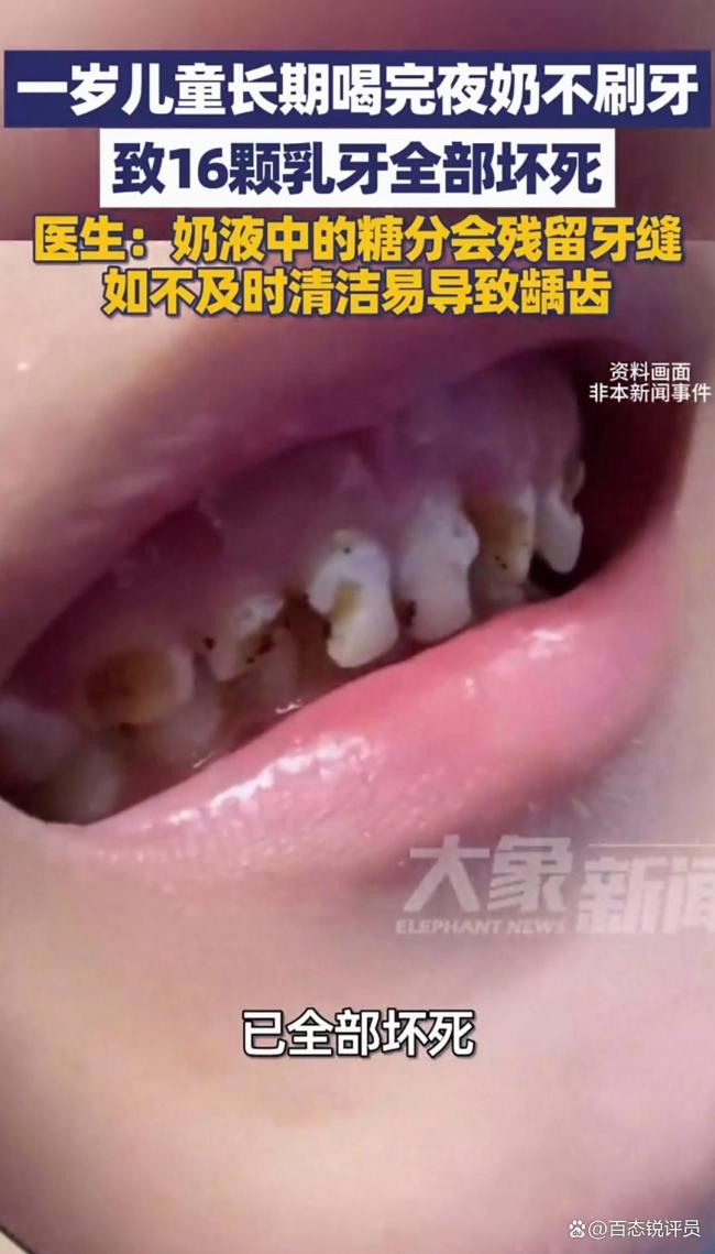 1岁儿童喝夜奶不刷牙致16颗牙坏死 杭州一岁儿童喝夜奶不刷牙16颗乳牙全部坏死近日,杭州一名一岁多的儿童小乖因长期喝夜奶且不刷牙,导致已长出的16颗乳牙全部坏死,引发社会关注。据孩子家长介绍,小乖每次喝完夜奶后便安然入睡,他们因此忽略了喝完夜奶后需清洁口腔这一关键环节。医生在... 09-25