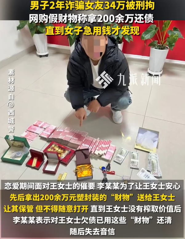 男子2年诈骗女友34万被刑拘 男子借女友34万拿假财物称还200万 “警察同志,我好像被骗了,请帮帮我。”11月23日,群众王女士急匆匆的来到中山西路派出所报警求助,称自己被男友诈骗了34万余元。民警在安抚好王女士的情绪后了解到,2023年年初,王女士在工作中结识了男子李某某,后通过几次接触,双方发展为恋人... 11-28