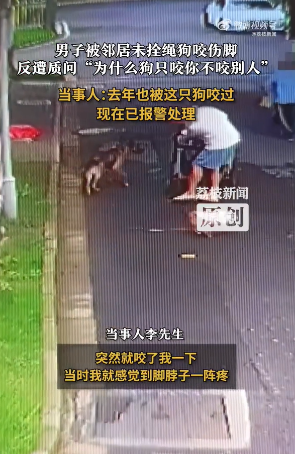 男子被同一只未拴绳狗咬2次,未拴绳犬屡犯,主人仍态度强硬! 10月16日,安徽马鞍山发生一起令人愤怒的“狗咬人”事件。当地市民李先生在遛狗时,竟被邻居家一条未拴绳的狗扑上来咬伤脚踝。更让人无法接受的是,这并非第一次——**去年他就被同一条狗咬过一次。**如今一年过去,悲剧重演。据李先生回忆,当天上午... 10-17