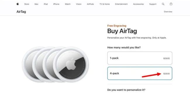 苹果美国官网现失误 罕见价格乌龙引发抢购潮 苹果官网近日在美国出现了一次罕见的价格错误,原价99美元的四件装AirTag被标为29美元,相当于买一送三。消息迅速传播后,大量消费者涌入官网抢购,导致发货时间被推迟到12月 11-13
