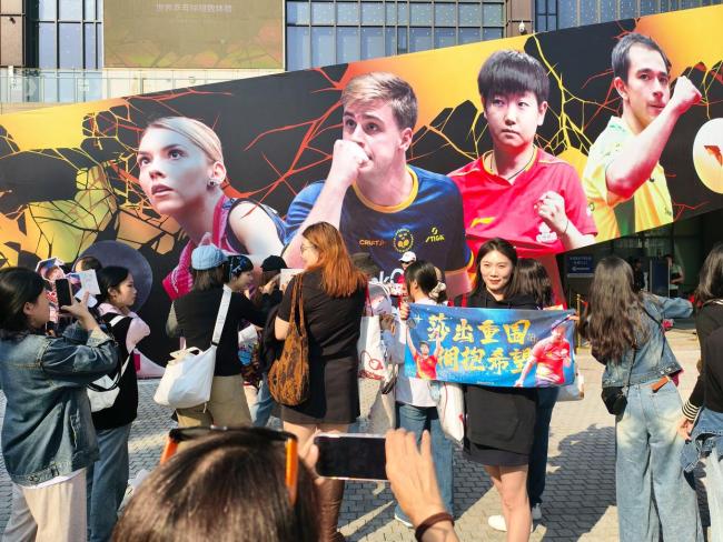 球迷聚集WTT球场观赛助威 乒乓盛宴点燃热情 9月28日,WTT中国大满贯开幕式在热烈的氛围中即将开始。比赛场馆外,热情的球迷早早排起长队,秩序井然地等待入场,空气中弥漫着期待与兴奋。入口处设立的巨幅赛事背板成为焦点,众多球迷驻足合影打卡,记录这一乒乓盛宴的开幕时刻 09-29