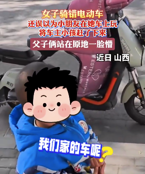 女子骑错电动车,误以为车上的小孩在玩耍,将其赶下车 2025年11月1日,山西晋城一名女子取完快递后骑错电动车,误以为车上的小孩在玩耍,将其赶下车后骑车离开。骑行一段距离后发现车辆不对,随即返回归还。事发时车主正在取快递,将孩子留在车上等候。事件未造成人身伤害,但引发关于家长监护责任和公共安... 11-03