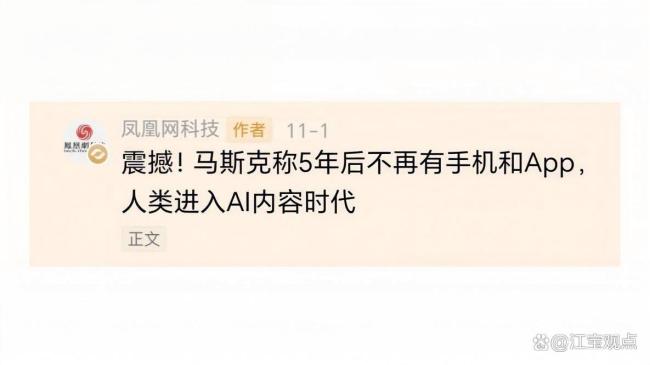 马斯克:5年后不再有手机和App AI重塑交互未来 特斯拉CEO埃隆·马斯克在《乔·罗根体验》播客节目中预言,五到六年内传统智能手机、操作系统和应用程序将彻底退出历史舞台。他描绘了一个由人工智能主导的全新交互图景,人们手中的设备将不再需要预先安装任何应用,所有内容都将由AI动态实时生成 11-03
