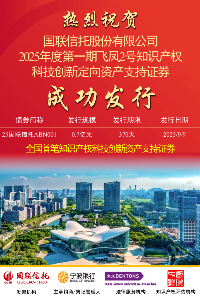 宁波银行成功落地全国首笔知识产权科技创新资产支持证券 9月10日,由宁波银行独立主承销的“国联信托股份有限公司2025年度第一期飞凤2号知识产权科技创新定向资产支持证券”成功缴款起息,发行金额0.7亿元,期限370天。本期资产支持证券从启动注册到首期发行历经一年半有余 09-15